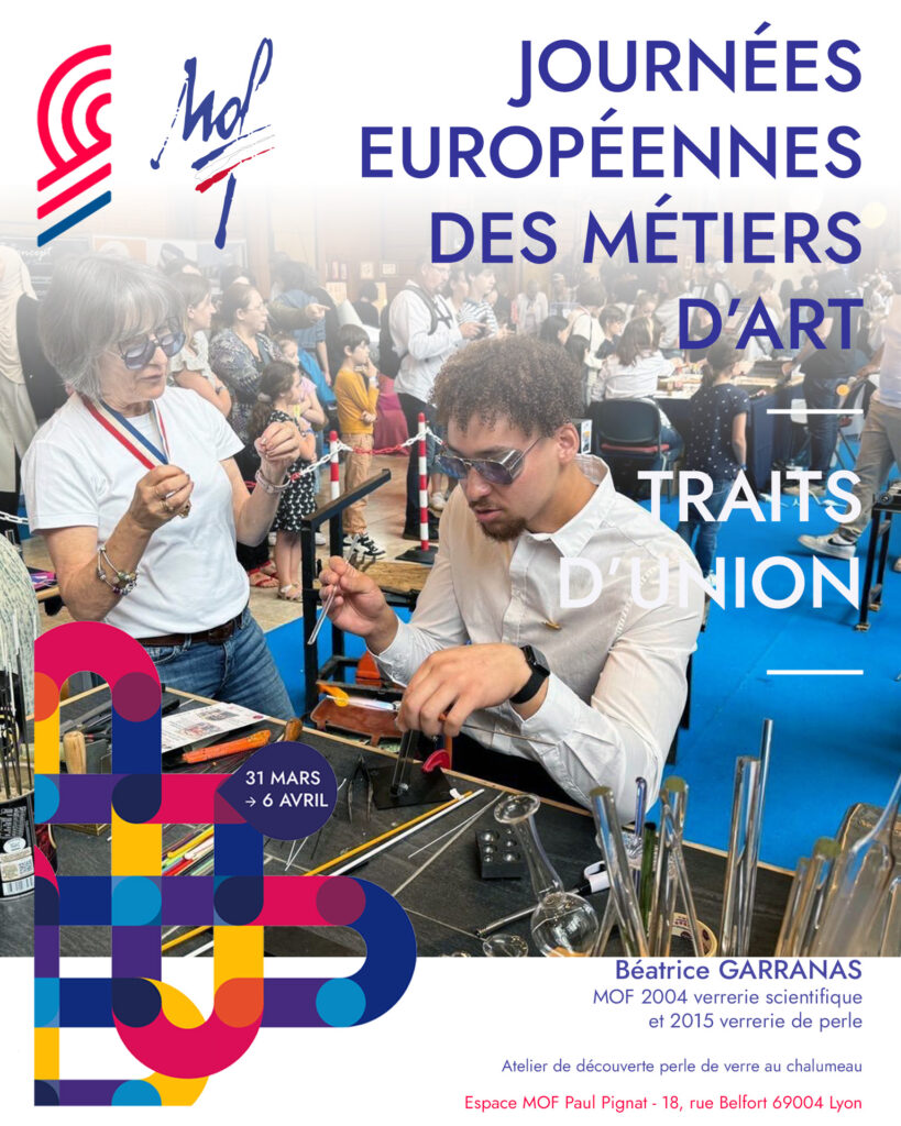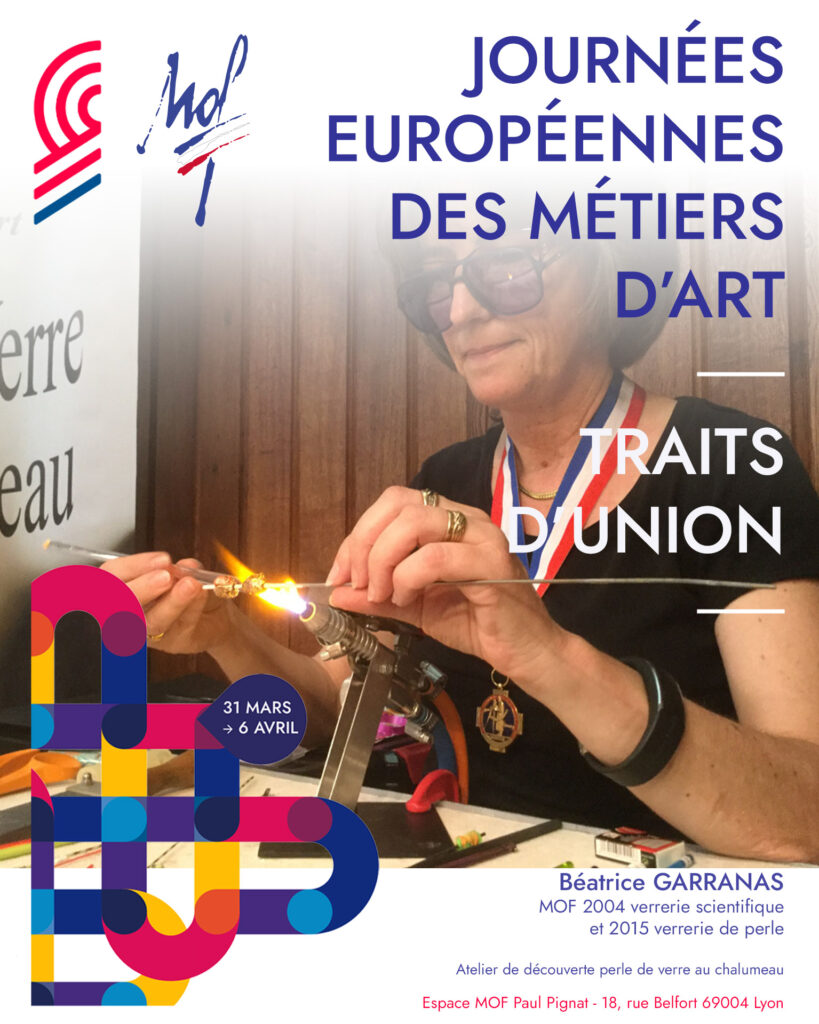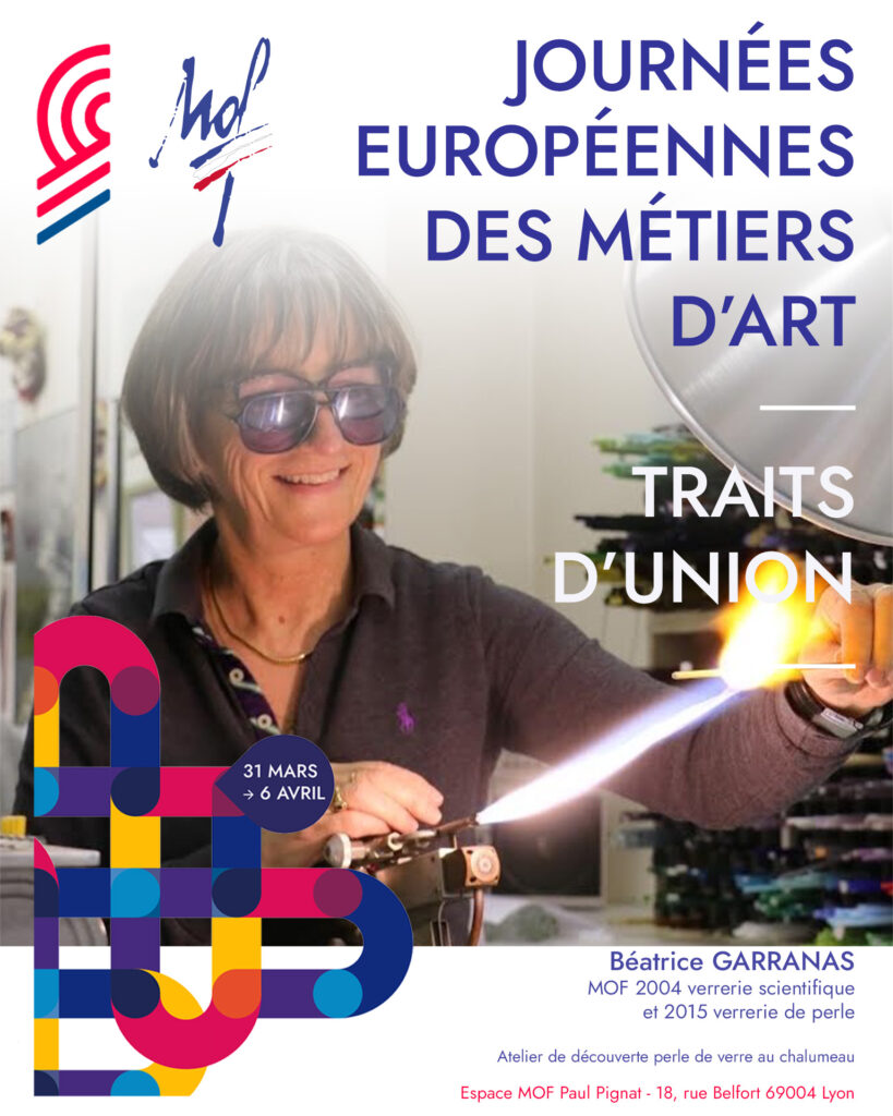 • Soufflage de perles de verre avec Béatrice Garranas (MOF verrerie scientifique et perles) : initiation aux gestes précis du soufflage au chalumeau.