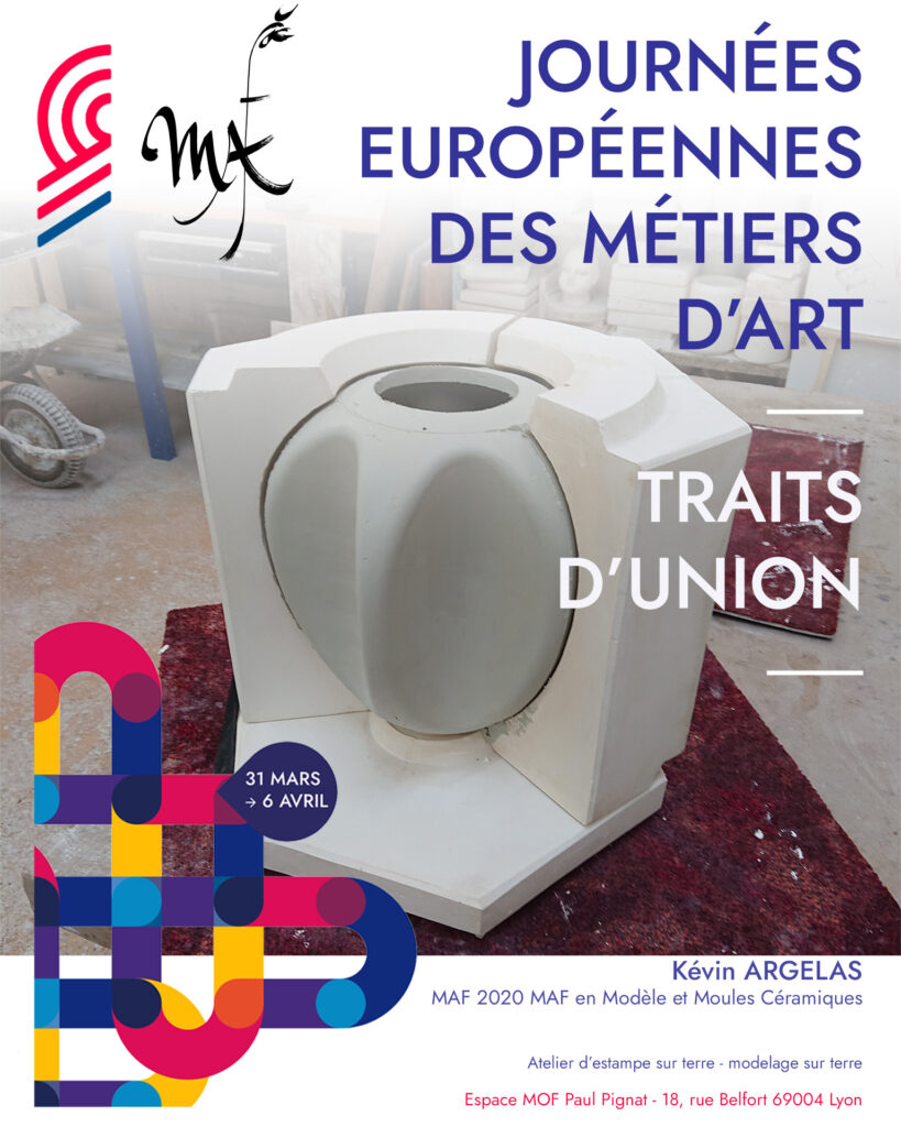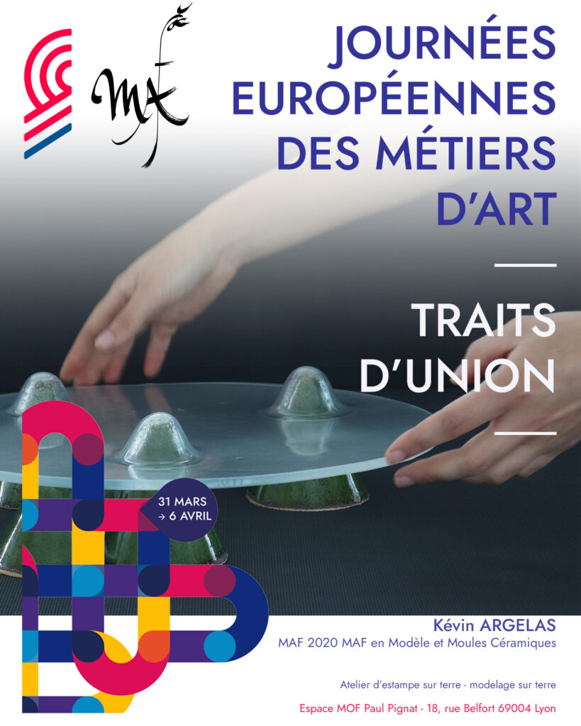 • Modelage et estampe sur terre avec Kévin Argelas (MAF céramique et verre, récemment lauréat coup de cœur du prix Avenir Métiers d’Art) : manipulation d’argile autodurcissante et initiation à l’empreinte sur terre.
