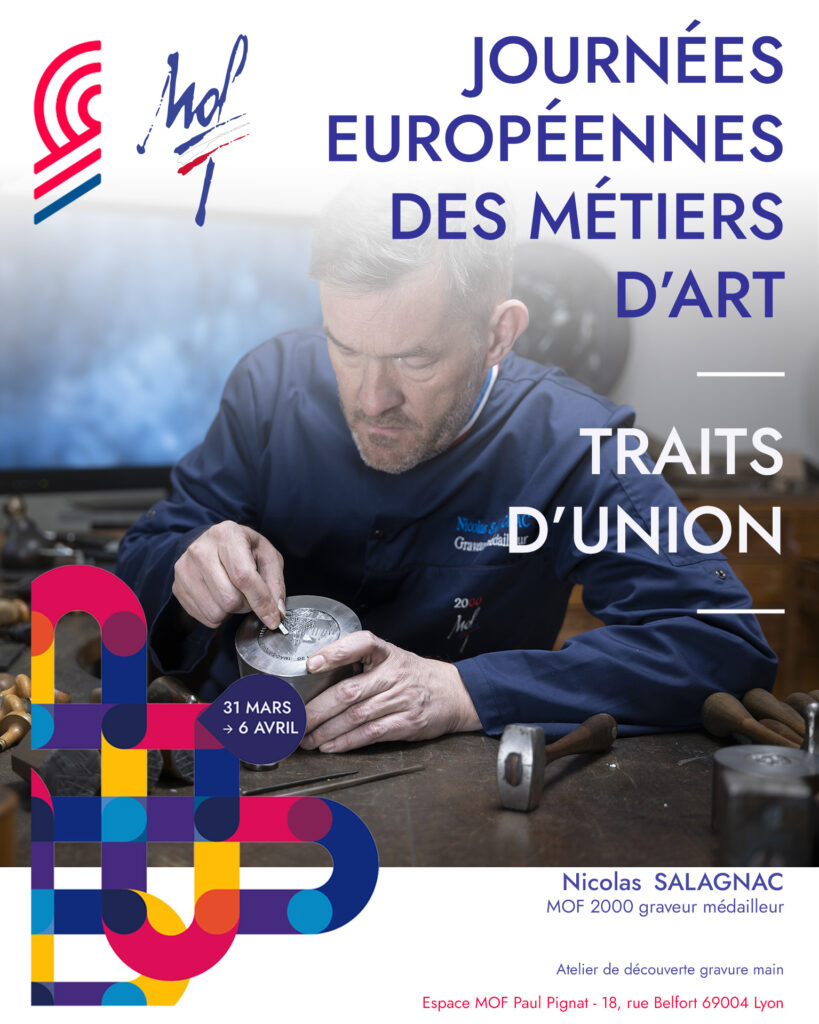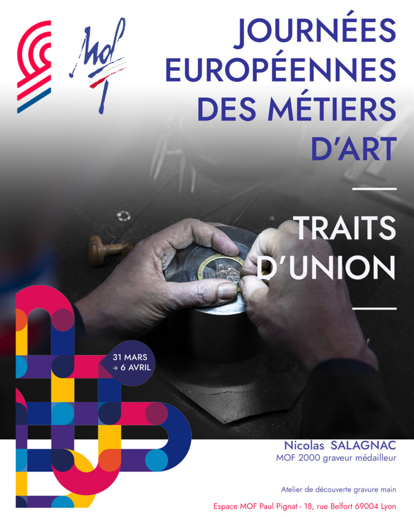 • Gravure sur médaille et lettrage au marteau et à l’onglette avec Nicolas Salagnac (MOF graveur médailleur) : démonstrations et essais de gravure sur métal.